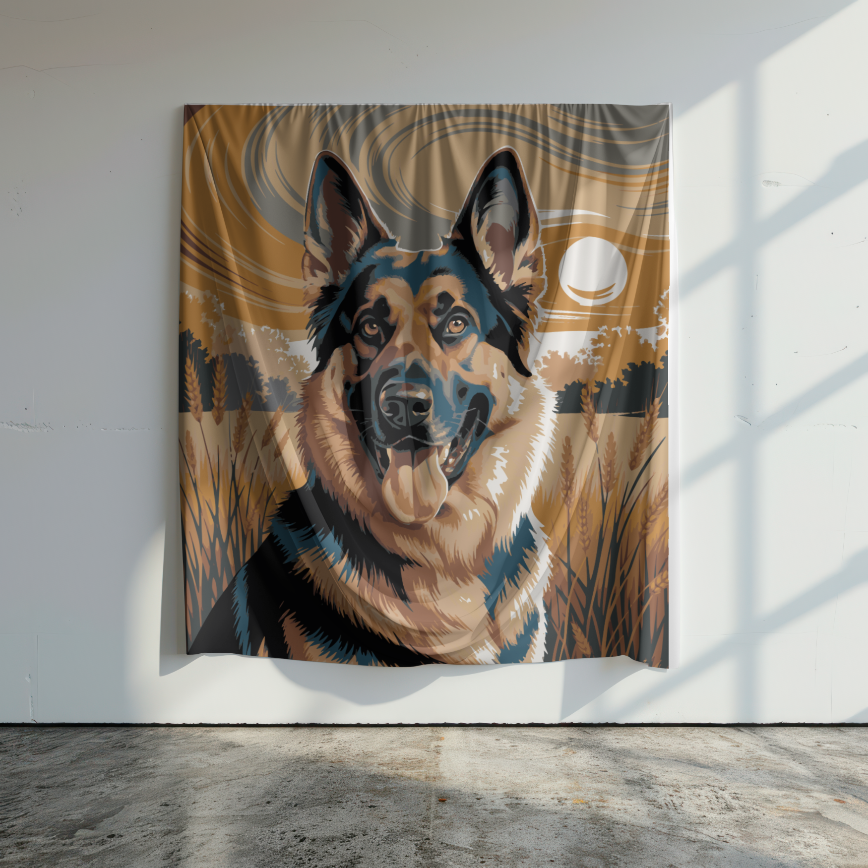 Wrap yourself in warmth with our Golden Fields Sherpa Blanket — featuring a silky fleece front, plush sherpa backing, and a beautifully illustrated German Shepherd in a countryside scene. Soft, cozy, and perfect for snuggling on cool nights.